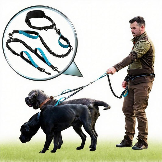 Hands Free Double Dog Leash – Dual Leash for Medium and Large Breeds – Lead for 2 Dogs with Padded Handles, Reflective Stitches, No Pull, Tangle Free
